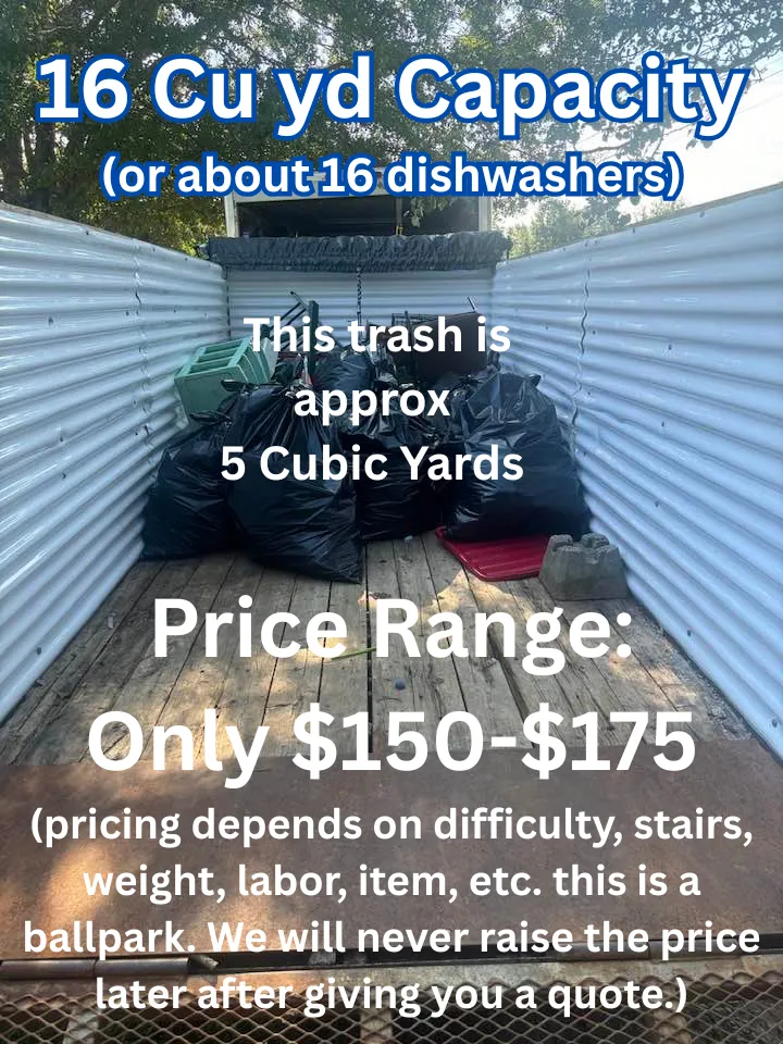We have a $79 minimum pickup in the Upstate, SC area. For larger jobs we offer free in person estimates. Just book online and one of our team members will meet you at your convenience, give you a fair price and if it works we will haul it off right then. If you decide to not work with us. There will be no charge or obligation.
